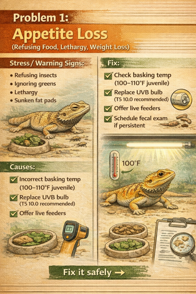Below is a complete expert breakdown of the most common bearded dragon health and behavior issues β and how to fix them safely.